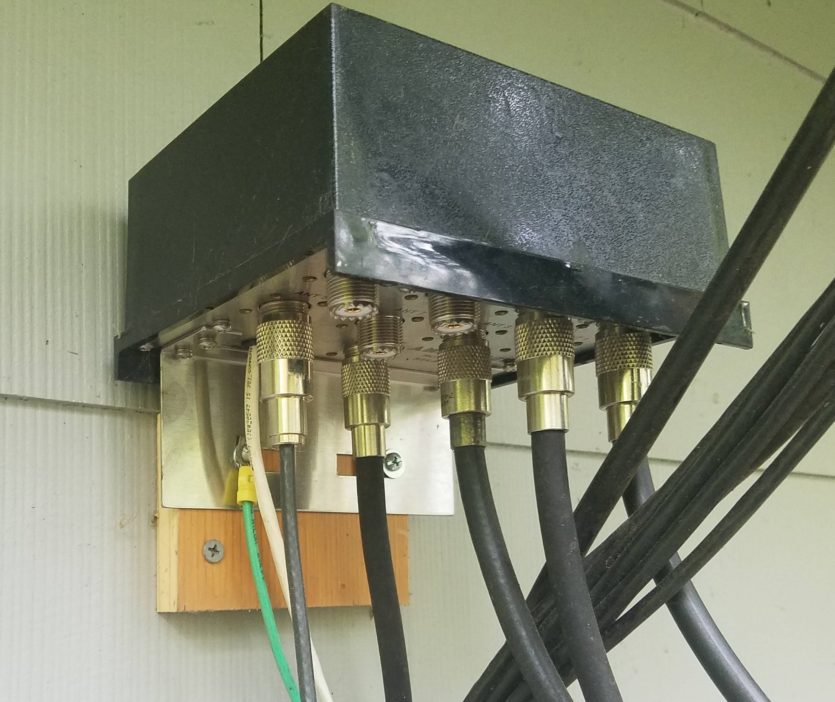 After getting the cable in, it was time to mount the outside unit. The switch is designed to mount to a tower or pole. I mounted mine under the eave, above were my wires penetrate into the shack. Since it was not mounted to a tower i ran a ground wire to my ground bus bar. At this point I installed the feed lines, made control connections and dressed all the wires.