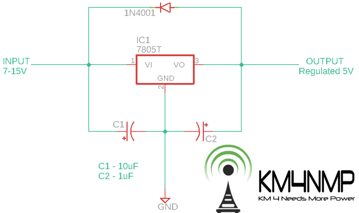 Since the onboard power regulator is not capable of a lot of power, A 7805 power regulator is being used to power the project. When this regulator is connected to 12vdc it produces a good amount of heat. Make sure to put a decent heatsink on the regulator.