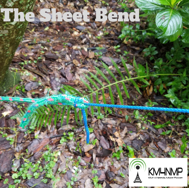 I like to use paracord to tie off my antennas and tarps while operating portable. There have been many times where I have had to use a larger rope to extend my paracord. Tying a knot with 2 different rope sizes can be difficult. The Sheet Bend knot is very useful and reliable in these situations. This knot can also be for 2 ropes the same size.
