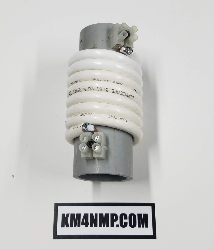 The Velocity Factor for this cable is close to the RG-6 cable at, 83%. The length works out to be 4.058′ or 48.67″. Since the bend radius of this cable is so much bigger than the RG-6, its coil is much bigger and does not have a form. With a little care and some zip ties you can make a nice loop.
