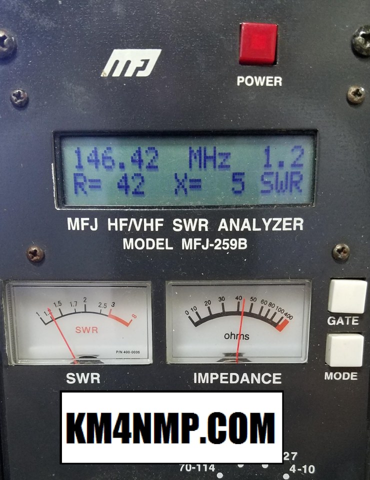 This antenna had to be shortened. 1/4″ (6mm) of wire was cut and then the feed point adjusted. This process was repeated until the SWR was acceptable. In total 1″(25mm) was removed from this antenna.