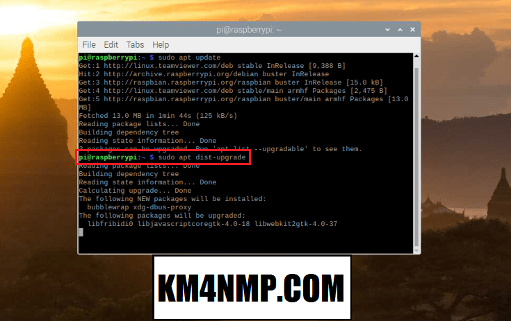 After it gets done, type “sudo apt dist-upgrade”. Follow any prompts that may be displayed. It may take several minutes to upgrade depending on how many updates have to be applied.