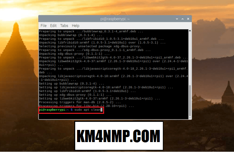 After the updates, it is a good idea to clear out any unnecessary files that are left over from the upgrade. Type “sudo apt clean”.