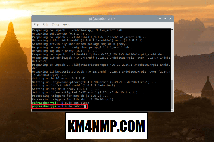 The last step to the update is to reboot the Raspberry Pi.