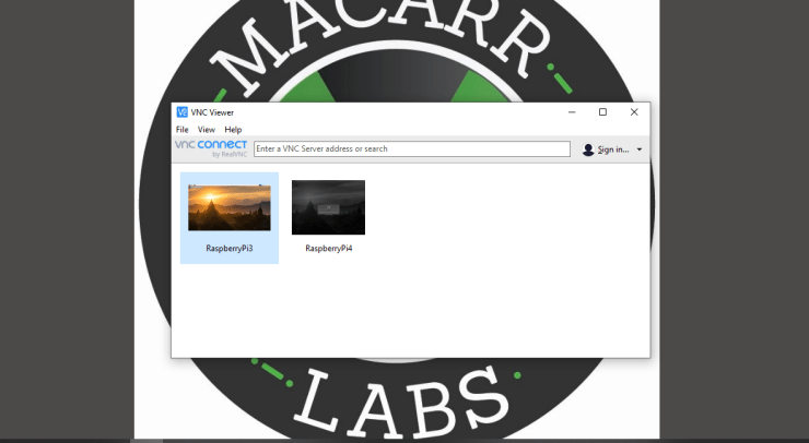 The Raspberry Pi is now ready for a remote connection. Download VNC client on your preferred device. Once installed, enter the IP address in the VNC Server Search bar. If you entered the proper address, it will prompt you for a Username and Password. You can now control your Pi with no keyboard or monitor attached.