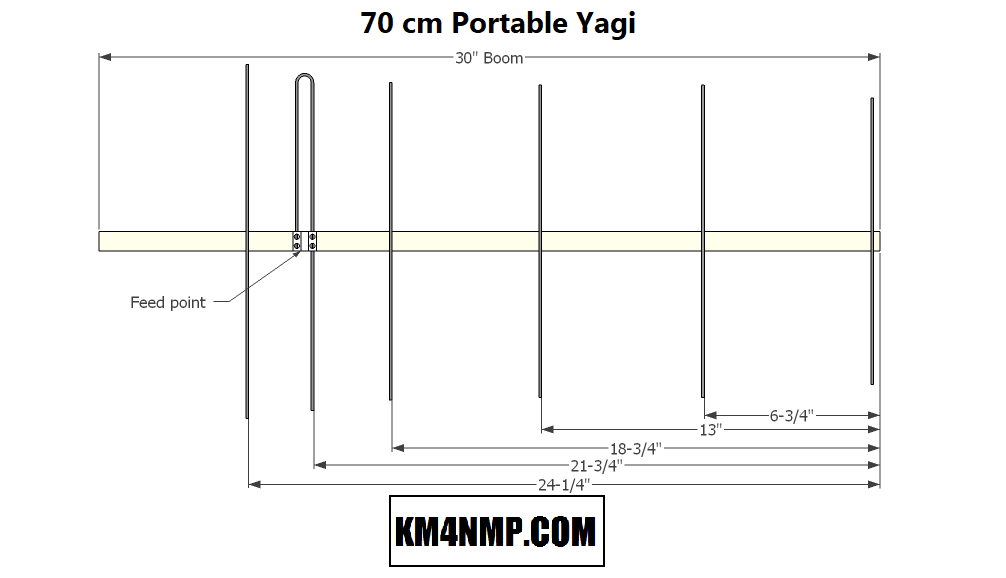 Spacing and element lengths came from an AMSAT article with instructions on building a yagi with foam and aluminum wire. The design is interesting and worth a read.