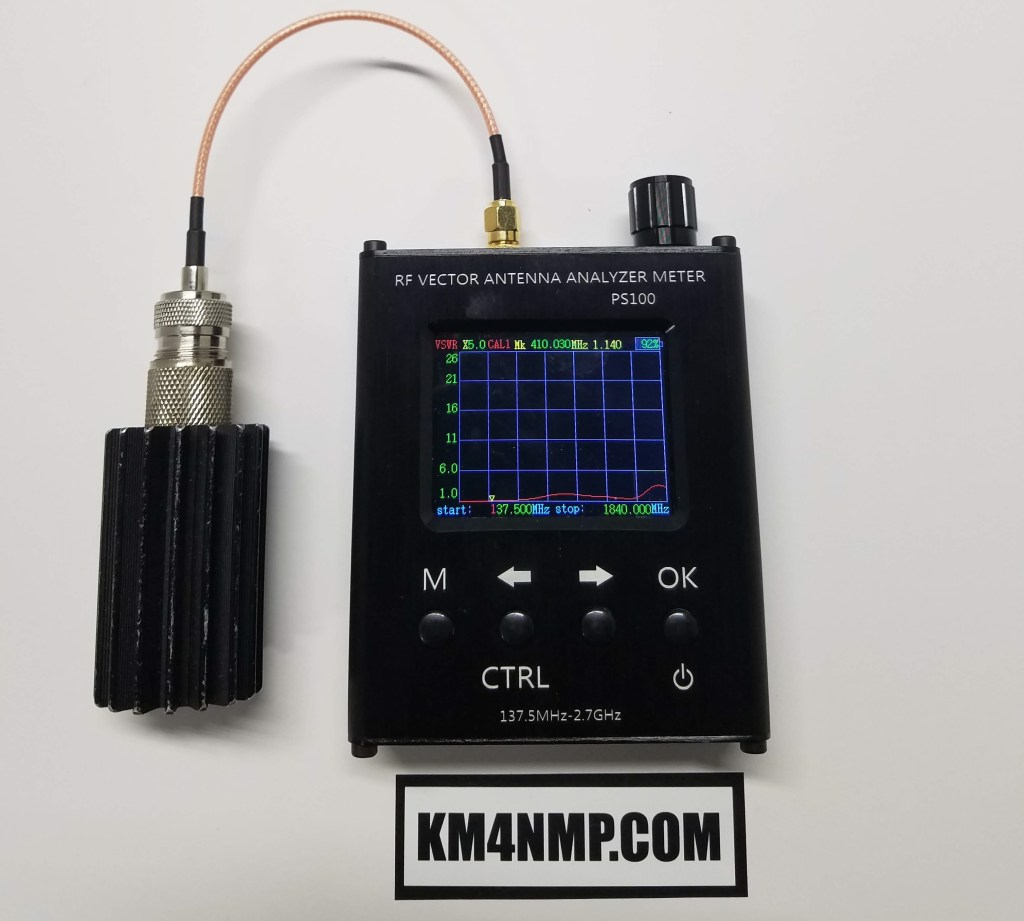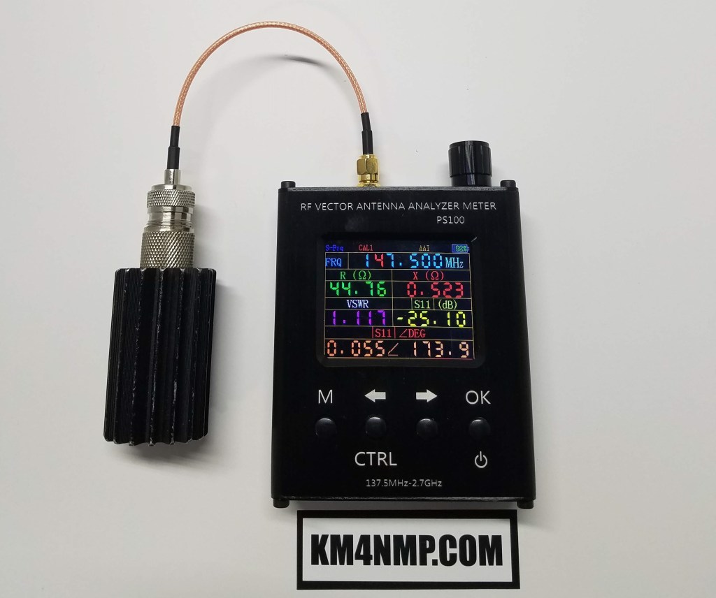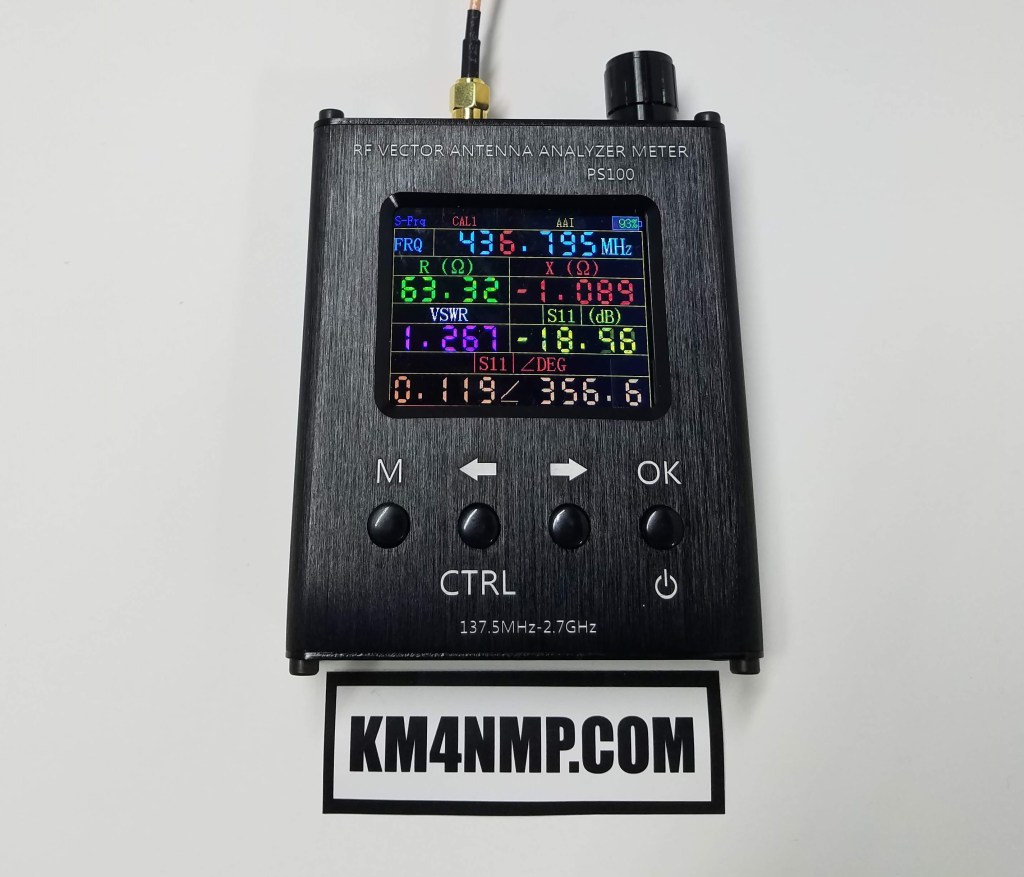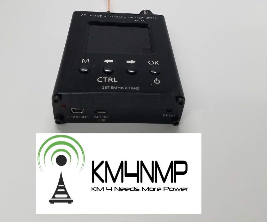 I have a PS100 RF Vector Antenna Analyzer on loan and wanted to try it out. In the past, I have almost bought one but decided to wait. This analyzer is capable of testing between 137.4 MHz and 2.7 GHz. Several parameters can be measured with this analyzer. You can measure Resistance, Reactance, Standing Wave and S11.