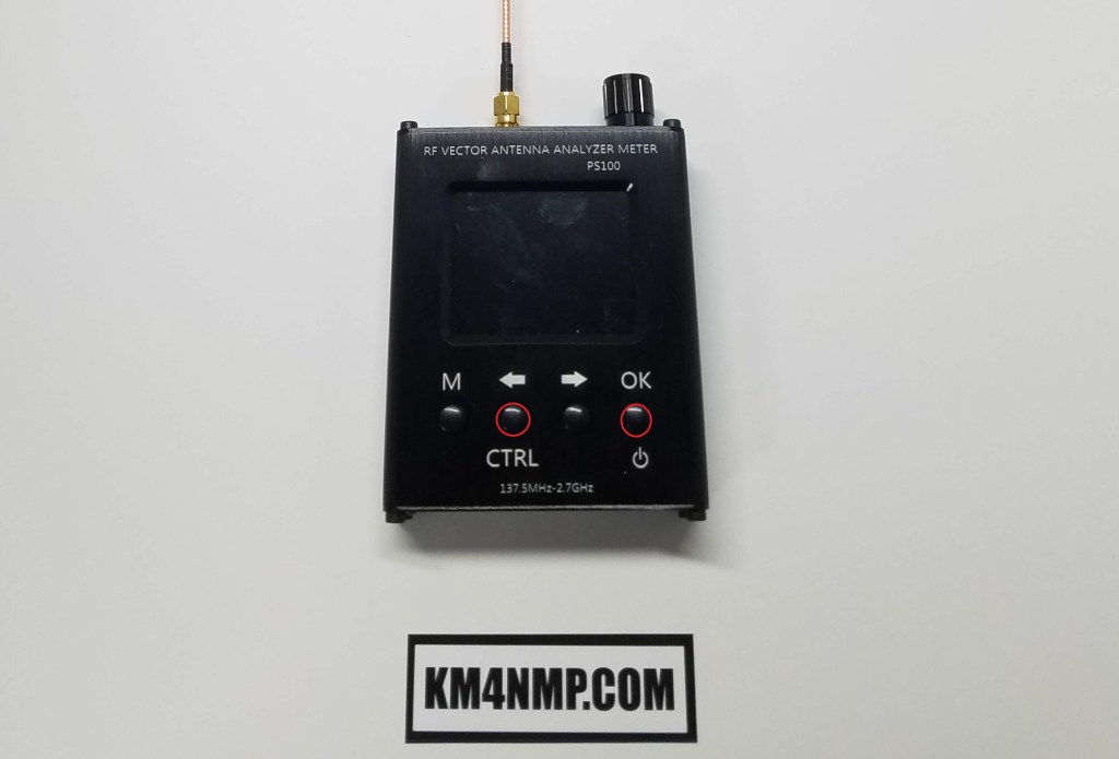 The antenna connector on the top of the PS-100 is a SMA-K. This is a very common connection type and many adapter cables are available.The rotary encoder is for changing the frequency while testing and changing some settings in the sweep mode.