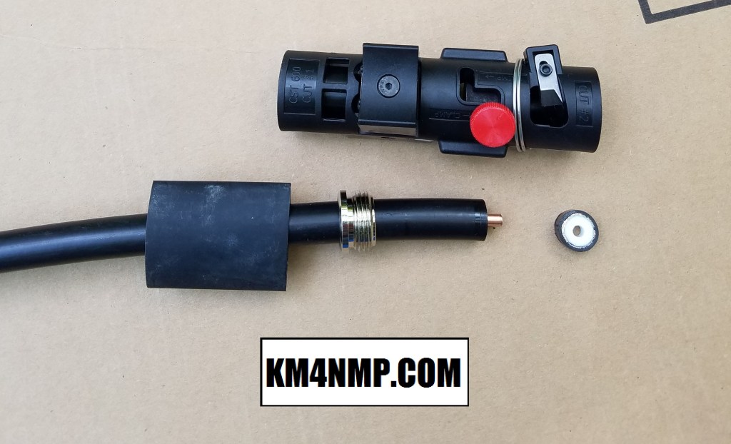 A good cable prep tool makes installing connectors very easy. This tool has 2 cutters to prep the cable. The first cut strips the dielectric and outer jacket off, exposing the center conductor.